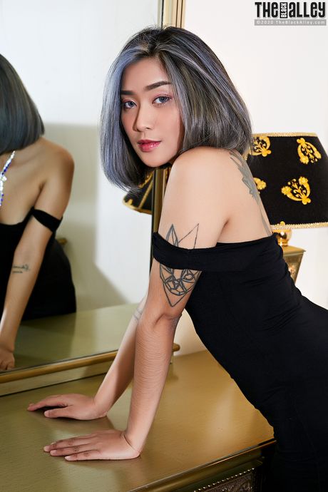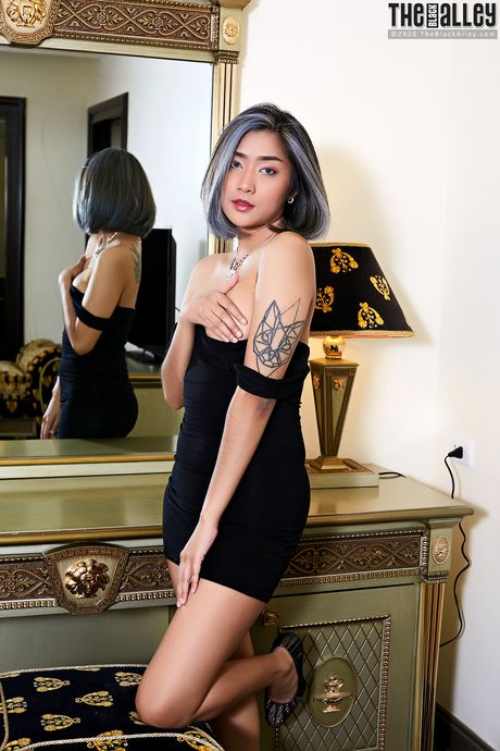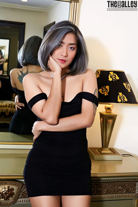The Black Alley: Amateur Asian babe Apple strips and shows her tiny tits and pussy