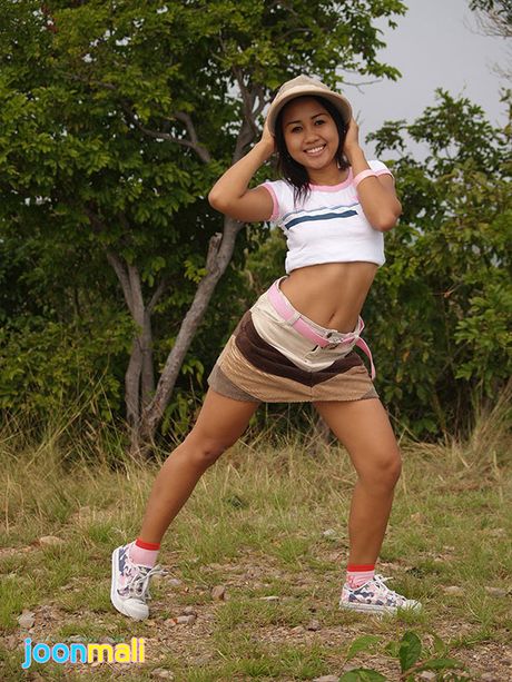 Joon Mali: Asian teen flashes cute panties and bubble buns outdoors