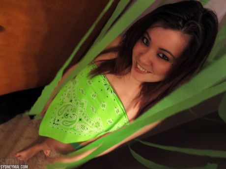 Pink Velvet Vault: Asian teen Sydney Mai strips and shows her tiny tits and pussy up close