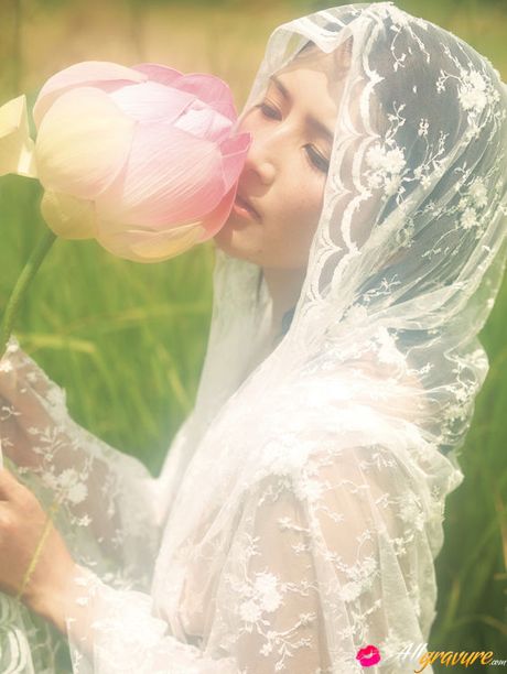 All Gravure: Neo Asian babe in white dress loves feeling her body in water