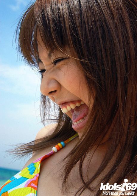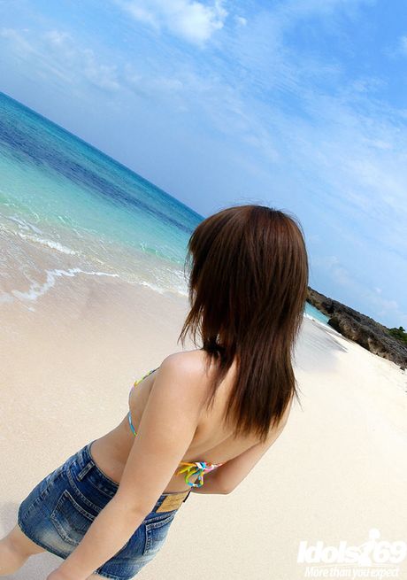 Idols 69: Rangy japanese brunette youthful Chikaho Ito in sexy bikini exhibits her ass at beach