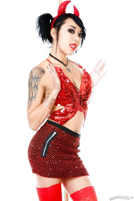 Burning Angel: Sexy american brunette Kimberly Chi in cosplay costume in strange fetish gallery