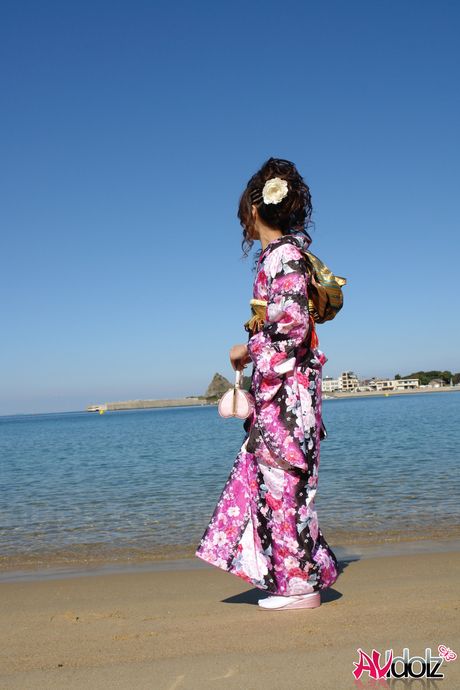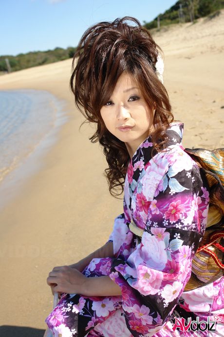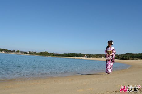 AV Idolz: Sexy Asian babe Chiaki strips and shows her hot body on the beach