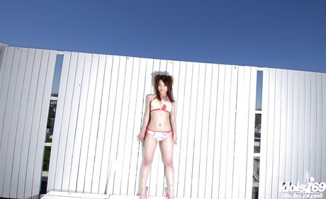 Idols 69: Slim japanese teen Mai Kitamura in hot bikini bares big boobies and spreads her legs
