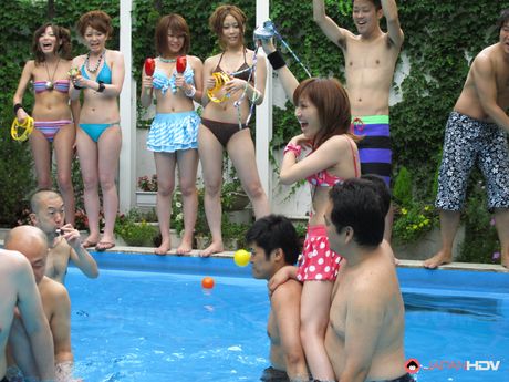 Japan HDV: Slutty Japanese summer girls are ready for group sex in the pool