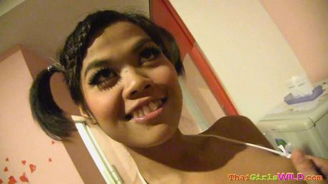 Thai Girls Wild: Super cute pigtail teen Thai babe Fibi sucks the dick and takes a big facial