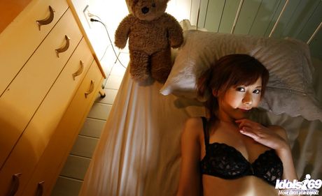 Idols 69: Sylphlike japanese young Hime Kamiya in sexy lingery showing tiny tits and spreading her legs